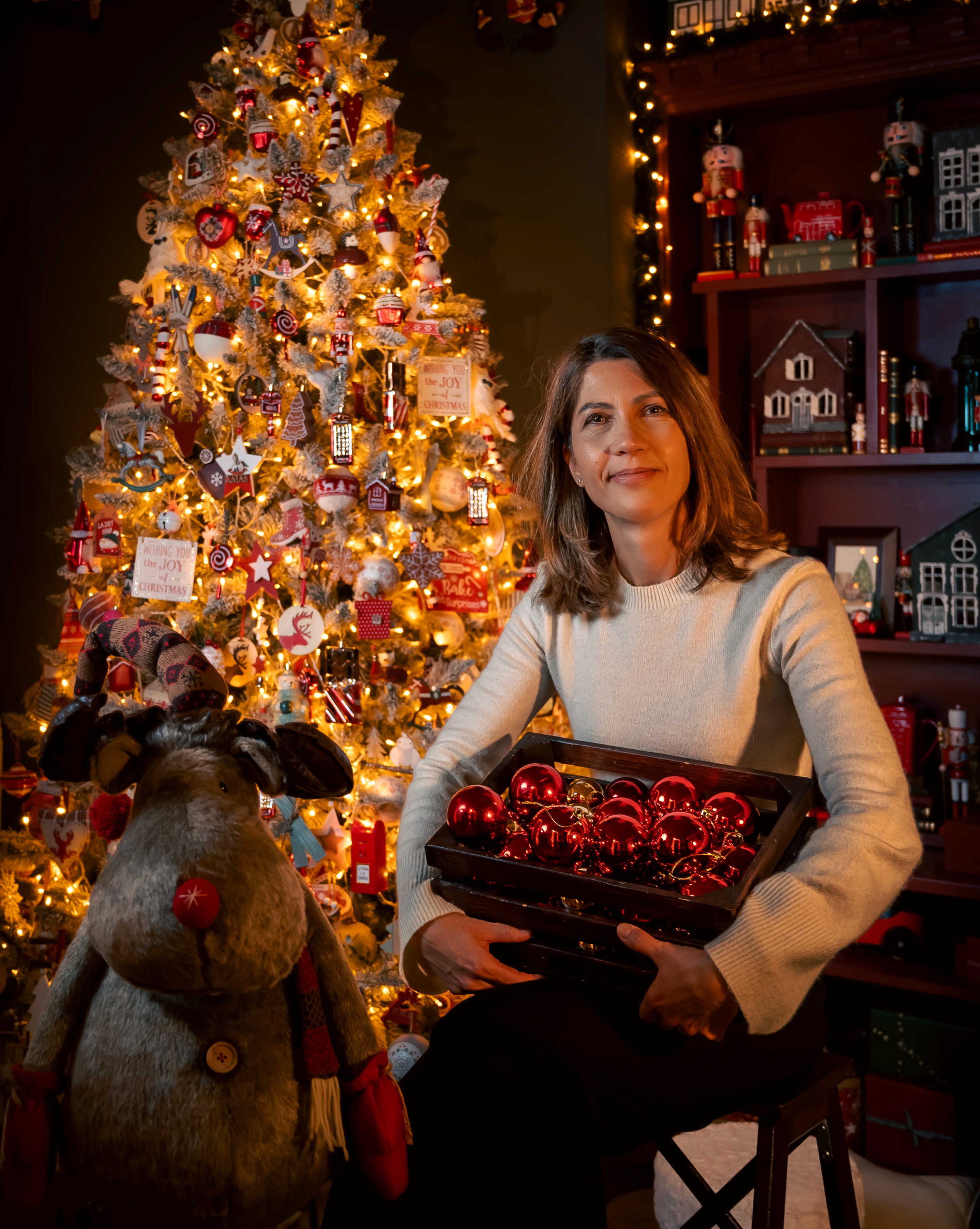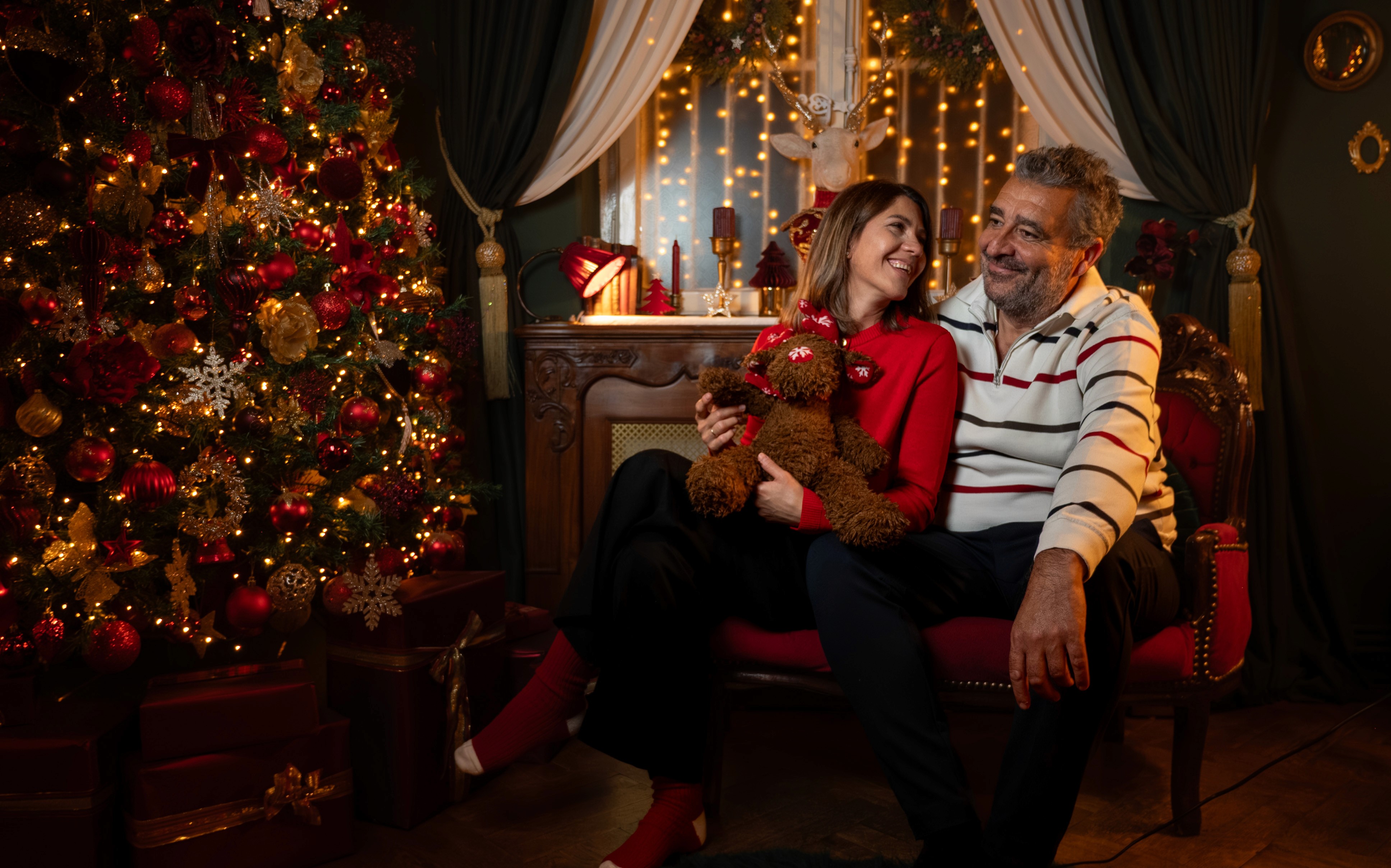 Lumina a fost elementul central al acestei ședințe: am folosit tonuri calde, specifice sezonului, combinate cu iluminare soft pentru a păstra atmosfera cozy a sărbătorilor. Fiecare cadru a fost gândit pentru a surprinde personalitatea clientului și relația dintre el și decor.